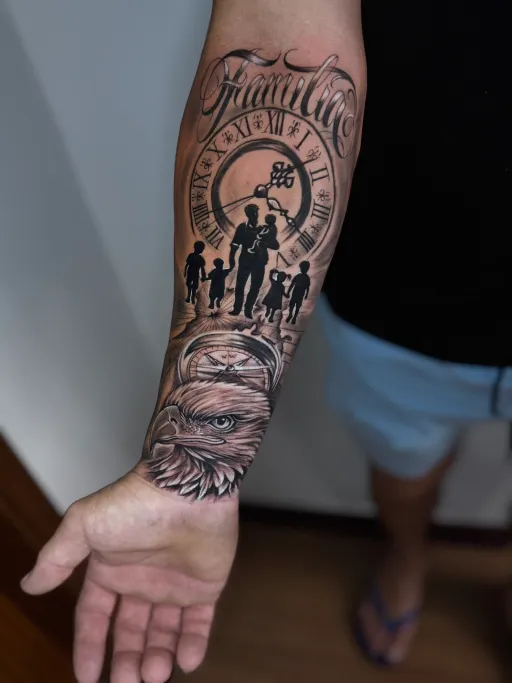 Por isso, cada tatuagem é desenvolvida sob medida, unindo rigor técnico e intenção para transformar sua narrativa em uma obra de arte na pele.